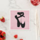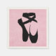 En silhuettillustration av ett par svarta balettskor/tofflor som står i den klassiska och contemporary balettdansaren dyker upp på topparna av deras tår, så kallade en pointe. Bakgrunden är rosa med lite vitt polka dots.