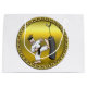 Svarte bälte karate-mannen sparkar en svart träningspåse. Den här tecknaden visar att han är aggressiv med benkicks i gymmet. Låt den här underhållande humoristiska barndesignen prata för dig.