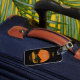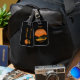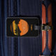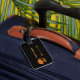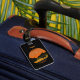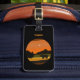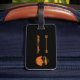 Black Bear personalized luggage tag. Outdoors designs with mountains, trees, birds, and black bear. Personalized text on front and back.