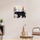 Svart björnvägg konst, Silhoutte-björn med blomskutta poster