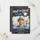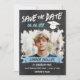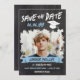 Coola studenten sparar datumkortet med en utskriven ritbordsbakgrund och ett coola-kritbordsteckensnitt med en blå banderoll och vit studentmössa i ett bedrövligt utseende. Lägg till ett foto av student inuti ett penseldrag ram. Trött kalkbord studenten sparar personligen på datumkortet med ett foto och med blått som accent färg. En coola med en fotomall.
