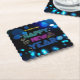 Modern Black & Blue Midnight Sparkle Neon Glow New Year Square Paper Coasters :