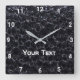 En kantig väggklocka med ett vackert svart mönster.