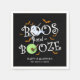 De pappra blöjorna från Boos & Sprit Halloween vuxen har en svart bakgrund, fladdermöss som flyger, ett iriserande blåspöke som flyger genom "boos", ett kopp av sizzrande grönt sprit med röd ögonboll och halm.