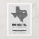 Berätta för dem vart du ska med det här flyttan-meddelandet. Har Texas i ett rutnät mönster med ett hjärta som du kan flytta för att visa var ditt nya hus är. Baksidan innehåller ett meddelande som uppmuntrar människor att se dig för kom. Kommer i bränd orange, maron, rött, statlig flagga-blått, grönt, lila, orange, svart och gult - mest baserat på statlig färg. Matchande produkter är tillgängliga.