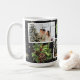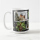 Vackert fotokollage jul mugg med hal, bär, gräs, grenar, snöflingor och fallande snö. Anpassa enkelt den här botaniska julen mugg med dina foton.