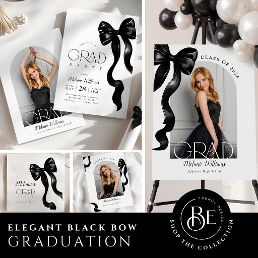 Black Bow Photo Graduation Party Invitation Inbjudningar