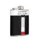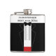 En svart tuxedo-kolv med stänk med rött är perfekt för vilken medlem som helst av ditt Bachelor-parti. Lägg till din bästa mans namn och din bröllop-dejt.