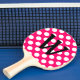 Enkelt svart brev monogram mot rosa och vit polka punkt mönster.