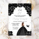 Den här eleganten och den glamorösa födelsedagsfest inbjudan har en vacker prinsessa med brunt hår i en svart boll. Texten kombinerar handskript och modernt sans serif typsnitt för ett klassligt och sofistikerat utseende. Blommigten, fjärilen och silver-konetti skapar perfekten blandning av rustika och chic. Grafik efter www.etsy.com/uk/shop/SunflowerDayLove