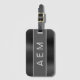 Svart med Grått Band Brushed Metall Foil Monogram Namn och initial Luggage Tag. Denna faux metalliska märkre för väska av rostfritt stål är perfekt för Back to school, arbete eller resande.