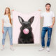 Black Bunny Blowing Rosa Bubble Gum Cute Playful Fleecefilt