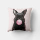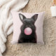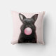 Black Bunny Blowing Rosa Bubble Gum Playful Kudde