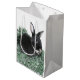 Cute Black Bunny-kanin i grönt Julgarland, kanske han tror att det är gräs eller hö, djur älskare julklapp helgdag