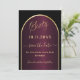A Spara datumkortet för en 60:e födelsedagsfest. En svart och burgundisk bakgrund, dekorerad med faux guld arch. Anpassa och lägg till ett datum och ditt namn. Texten: 60 och Spara datumet skrivs med ett stort trendig-handskript i stil.