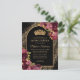 Black Burgundy Red Guld Glitter Blommigt Quinceane Inbjudan Vykort