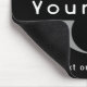 Anpassadets kampanjmusknapp med företagets logotyp. Lägg till text och logotyp.