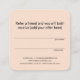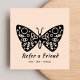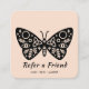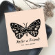 Referenskortet Feminine Black Butterfly & Rosa Beauty Salon har en elegant som har en mjuk bakgrund och en delikat svart butterfly-accent. Det här snyggt-kortet uppmuntrar klientreferenser med en chic, feminin beröring, skapar perfekten för skönhetsalonger. Dess sofistikerade utformning återspeglar ditt salonmärke samtidigt som den ger kunderna en professionell att sina positiva upplevelser med andra.