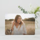 En elegant, könsneutral, studenten-fotoannonsering för att fira dem som får medicinska MD-examina. Med ett fullt-blekt foto på framsidan med överlagrad text och caduceus-symbolen (med "MD"-förkortningen) omgiven av en lagerkrans. Malltexten för student är helt och hållet anpassade, så teckensnittet storlekt, stil, färg och placering kan ändras. Baksidan har en andra mindre bild- och malltext för ett längre meddelande. Utformningen finns i andra färg, med en asclepius-symbol, med design för specifika kvalifikationer (RN, DO) och med olika layouter/orienteringar i min butik.