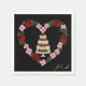Add a unique, personal touch to your celebration with these elegant dessert napkins. This design features a romantic wedding cake surrounded by a delicate heart wreath of red roses and pink hydrangeas.