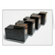 Tomma bläck cylinderampuller sorterade på en vit bakgrund.