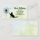 Svart silhuett av katt med dandelion och sållningar på grönt och blå abstrakt. All text kan ändras.