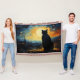Krymliga roliga djur, nattstad och stjärntur himmel. Den söta lilla svarta katten tittar till himmel, inspirerad av Vincent van Gogh. Färgfullt fantasinum. Digital oljemålning, bra konst.
