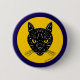 En tittar illustration av ansikte på en svart katt med gult i ögonen visas i en måne-liknande cirkel i denna originalkonst av Richard H. Fay som är lämplig för Halloween.