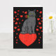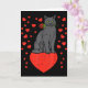 Black Cat Biting Rose Hearts Valentines Day Animal Kort