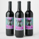 Black Cat-blomman krona sitta i rosa ros Vinflaska Etikett