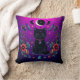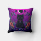 Black Cat Celestial Mystical Throw Pillow features an enchanting black cat surrounded by moon phases, stars, flowers, crystals, and magical botanical details on a vibrant purple and pink background. This mystical fantasy design blends celestial, witchy, and gothic-inspired elements for a bold, colorful look that feels both dreamy and magical. A beautiful choice for black cat lovers, moon gazers, crystal lovers, and anyone drawn to mystical, spiritual, or celestial artwork.