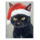 Black Cat Christmas Painting Santa Hat Holiday Notebook