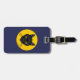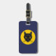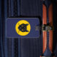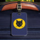 A retro-looking illustration of the face of a yellow-eyed black cat appears in a moon-like circle in this original Halloween-appropriate art by Richard H. Fay.
