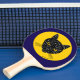 A retro-looking illustration of the face of a yellow-eyed black cat appears in a moon-like circle in this original Halloween-appropriate art by Richard H. Fay.