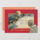 Häxan och hennes husdjur flyger med fladdermus. Fullt tänder vägen. Den här vintagen Halloween-utskriften innehåller en häxa på en bom, svart katt, fladdermus och en kvinna som bevittnar händelsen.