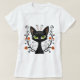 Black Cat Green Eyes Filigree Design T Shirt