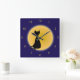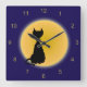 Black Cat & Gult Måne Halloween Art Fyrkantig Klocka