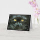 Han har koppar ögon som lyser upp som lyktor på natten. Perfekt som hälsningskort eller inbjudan till Halloween fest. Finns på frimärke, T-skjortor och andra varor. Anpassa ett meddelande inuti, om du vill.