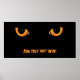 Svart katt och orange ögon svart och orange Halloween fest poster. Storlek som visas är 12" x 24".