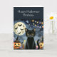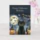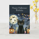 Detta Halloween-temade svarta födelsedagskort för katt visar en digital vattenfärgsillustration av en svart katt, en måne och jack-o'-lyktor. Insida har ett inre hälsning-område som möjliggör personlig. Det är ett beundransvärt skämtsamt födelsedagskort, perfekt för barnens födelsedagar som firas under eller på Halloween.