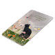 En lugn svart katt sitter i ett plåster med söt blommor och ser en färgstark fjärilflit genom luft. Orden "Ibland är det det lilla saken som gör dig glad" kan tas bort eller ändras om du vill.