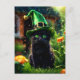 Black Cat i Grönt St. Patrick's Day Witch Hat Vykort