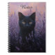 Black Cat i Lavender Fält Illustration Anteckningsbok