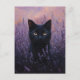 Black Cat i Lavender Fält Illustration Vykort