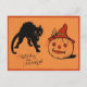 Black Cat Jack o lantern Pumpkin Witch Hat Vykort
