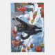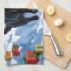 En helgdag med hjärtan som visar en glad katt som leker i snö, bär en julhatt och omgiven av färgfulla presentlådor. I bakgrunden bygger barn snögubbe bredvid ett Julgran som är täckt av snö och skapar en glatt vinter under. Perfekt för att sprida helgdag och fånga julens magi.