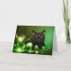 Svart katt med grönt i en grönt Julhälsningar julbakgrundskatt