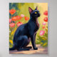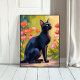 Black Cat | Kitten Pet Watercolor Flowers Painted Poster