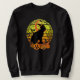 Black Cat Måne Pumpkin Witch Hat Halloween Scary V Lång Ärmad Tröja