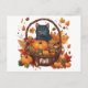 Black Cat med Fall Harvest Basket Vykort